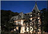 ・白い洋館 萬翠壮城の近くに緑の三角屋根に踊り場のステンドガラスがみごとな洋館があります。 元松山城主の別荘だったところです。 夜には、ライトアップされています。お勧めは全日空ホテルのカフェからみると城と二つの光の幻想がたのしめます。 |